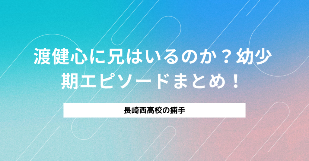 渡健心に兄がいるのか気になって検索した人、多いのではないでしょうか? 高校野球で注目されている選手だからこそ、家族構成や幼少期のエピソードまで知りたくなりますよね。 この記事では「渡健心 兄」というキーワードをもとに、気になる情報をわかりや...